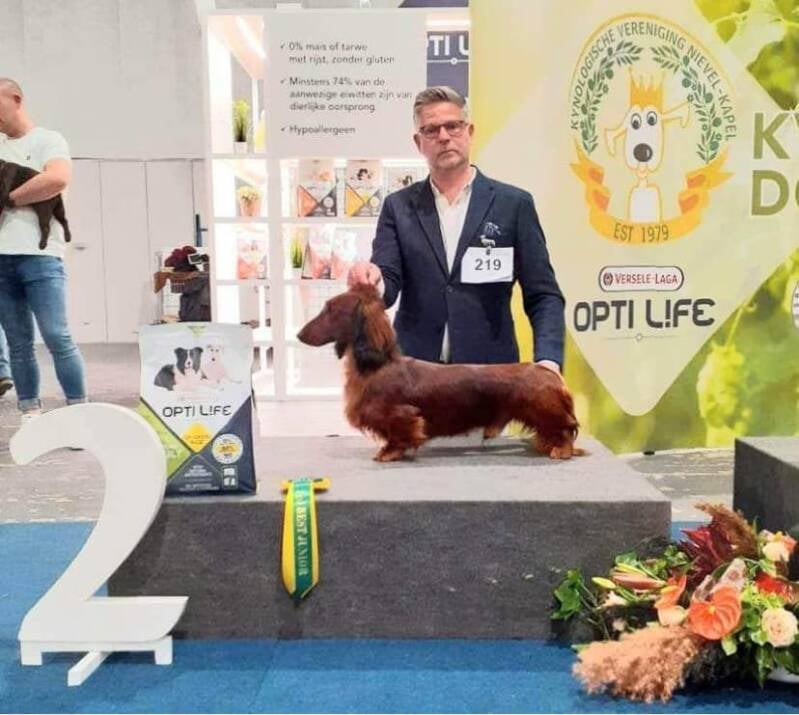 At the Dutch Dachshund specialty we have shown Voila for the first time. She was entered in Junior class and won and gained her first Junior CAC. Then she even went best Bitch with the a double CAC as this is the Dutch specialty!