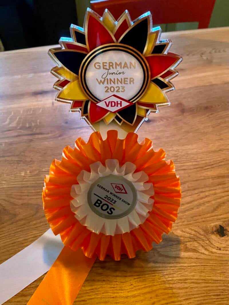 She went Best Junior bitch in a strong big class; German Junior Winner' 23 and also best bitch, BOS, J-CACIB, J-CAC & J-club CAC.