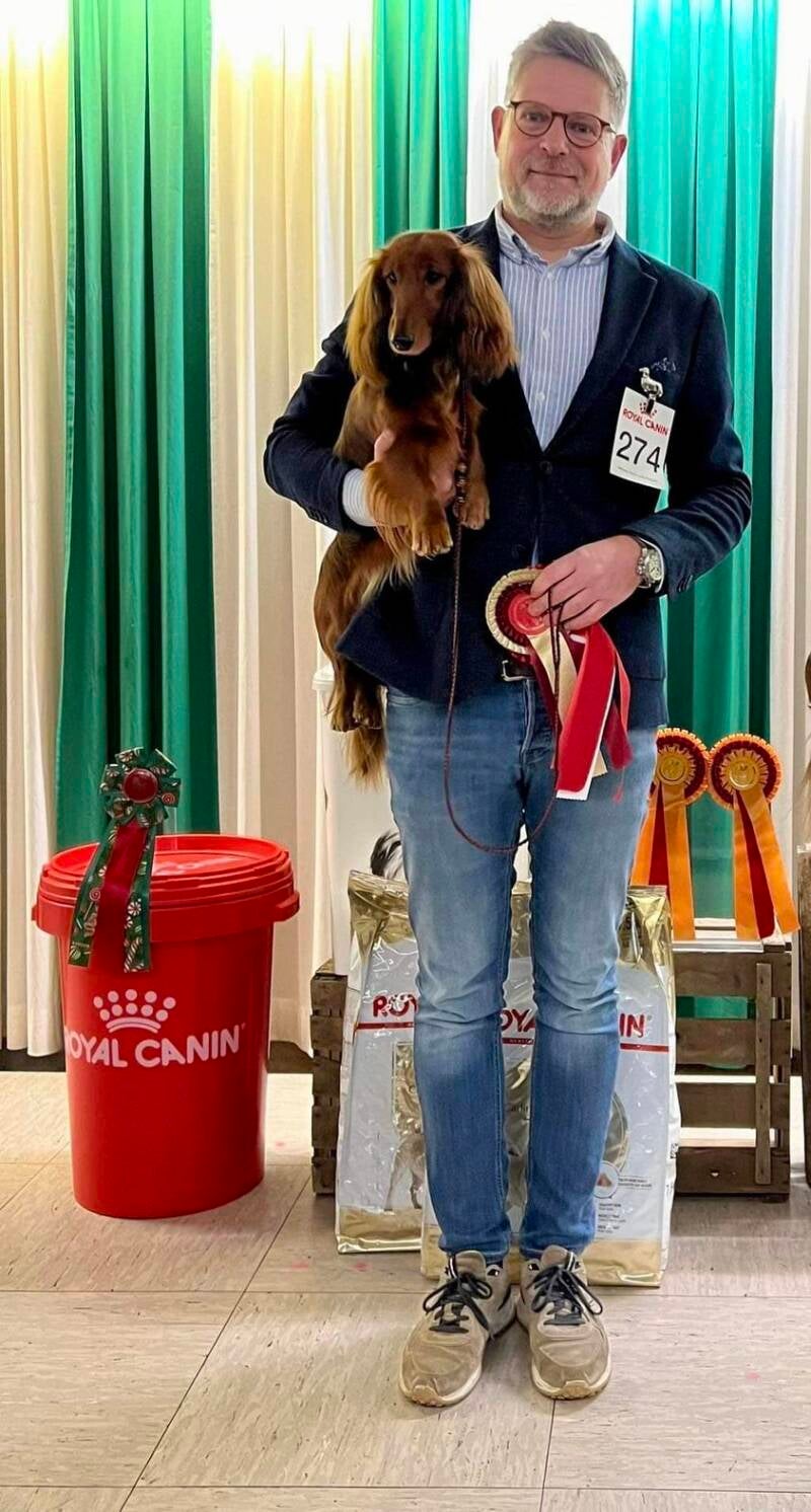 129 Brussels international Dogshow. Huntaks Primo Rosso won BOB and became Belgian Winner 2023 and Red Top’s Ztarduzt won her first Belgian Junior CAC and CACIB and became Belgian Junior Winner 23! And also BOS out of junior class over the open and champion bitches! judge; Csaba Zsolt Lokodi from Romania