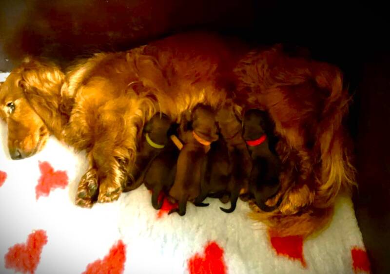 Zara gave birth to 6 puppies! 3 boys and 3 girls! All red. The proud father is our young boy Max!