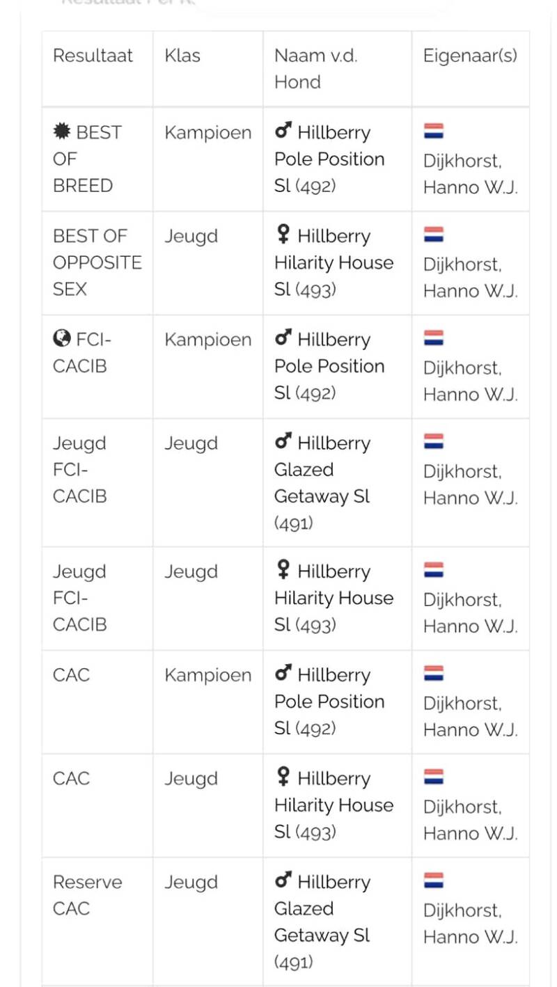 His litter sister Hillberry Sprint Weekend SL won her junior class as well but even made it to BEST OF BREED at her first Dutch show!