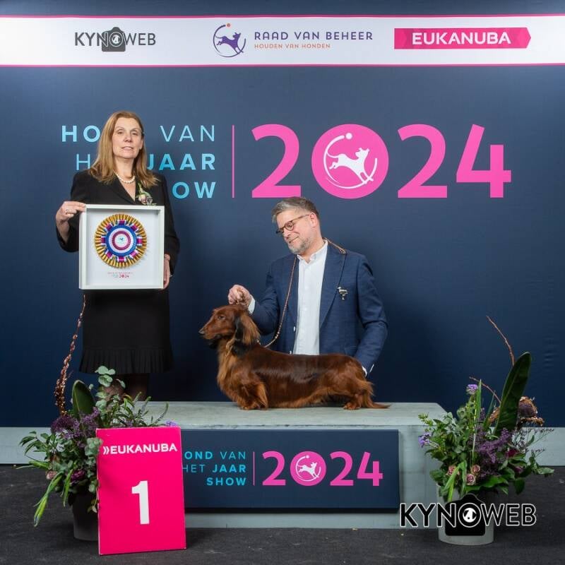 Our boy Max (Hillberry Pole Position SL) on the front cover of our Dutch Dachshund Magazine. This because he won BEST IN SHOW at the WUT World Show.